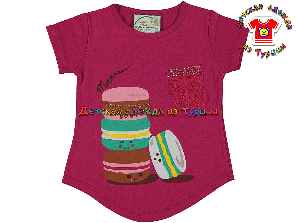 Футболка для девочки с рисунком пирожных. 100% хлопок