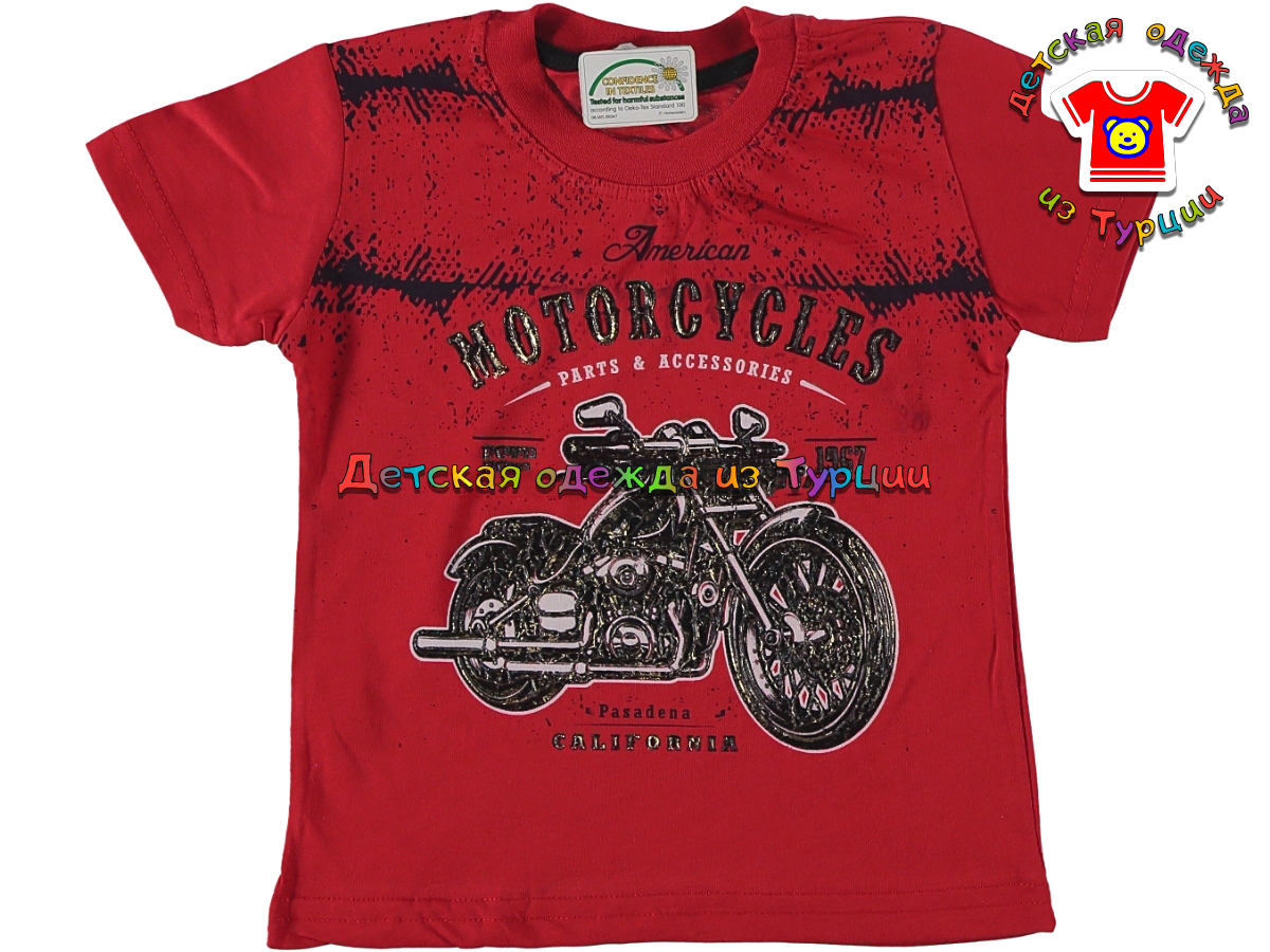 Состав: 100% хлопокСтрана производитель: ТурцияОписание: Футболка для мальчика с надписями и рисунком мотоцикла.