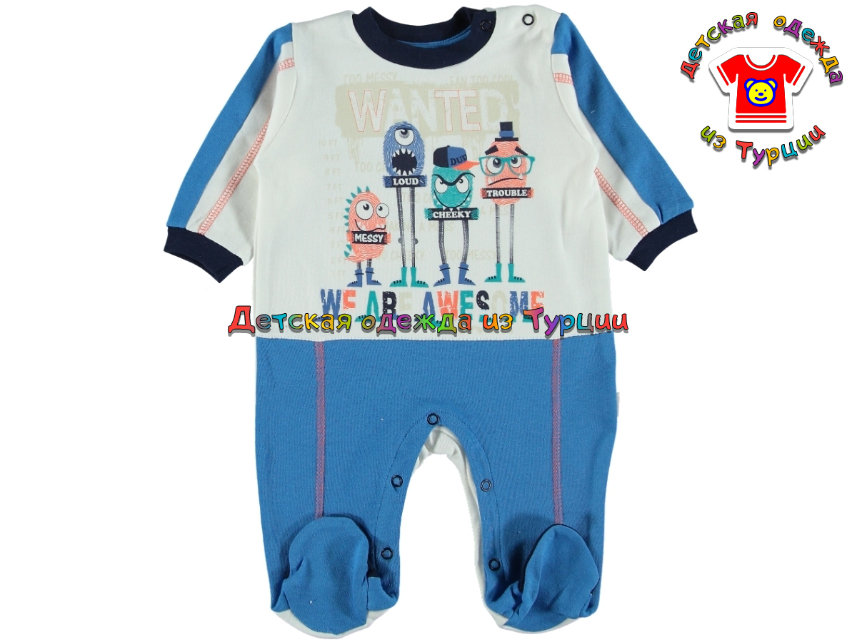 Комбинезон для мальчика с рисунком чудиков. В упаковке 3 шт.