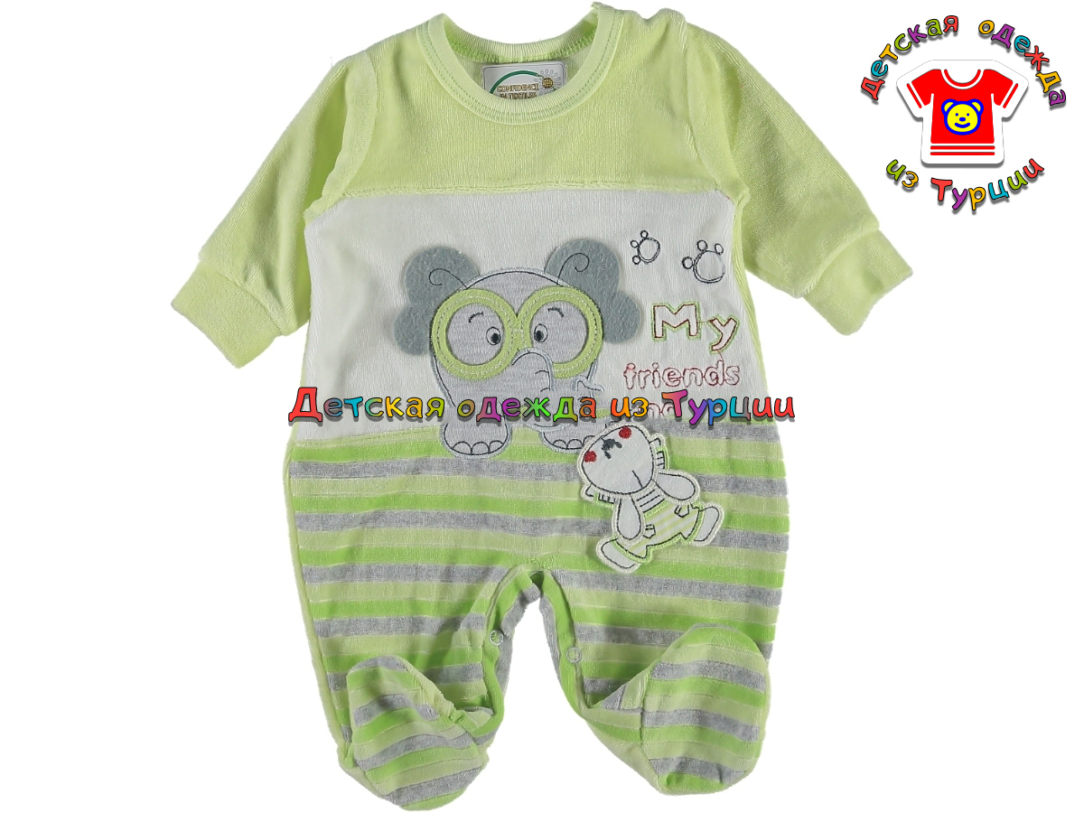 Велюровый комбинезон с аппликацией слоника. 100% хлопок.