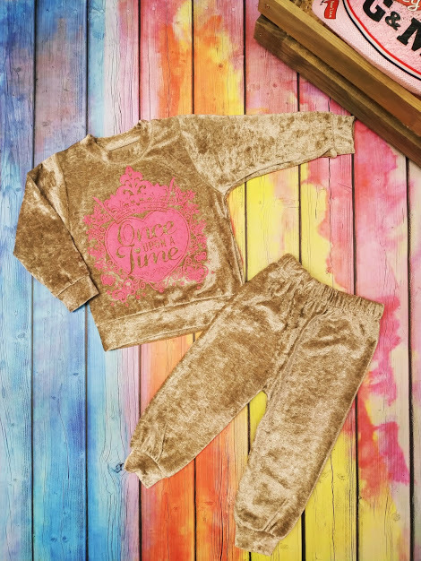 Состав: 100% хлопокСтрана производитель: ТурцияОписание: Велюровый костюм для девочки с надписями и рисунком. Кофточка и штанишки.