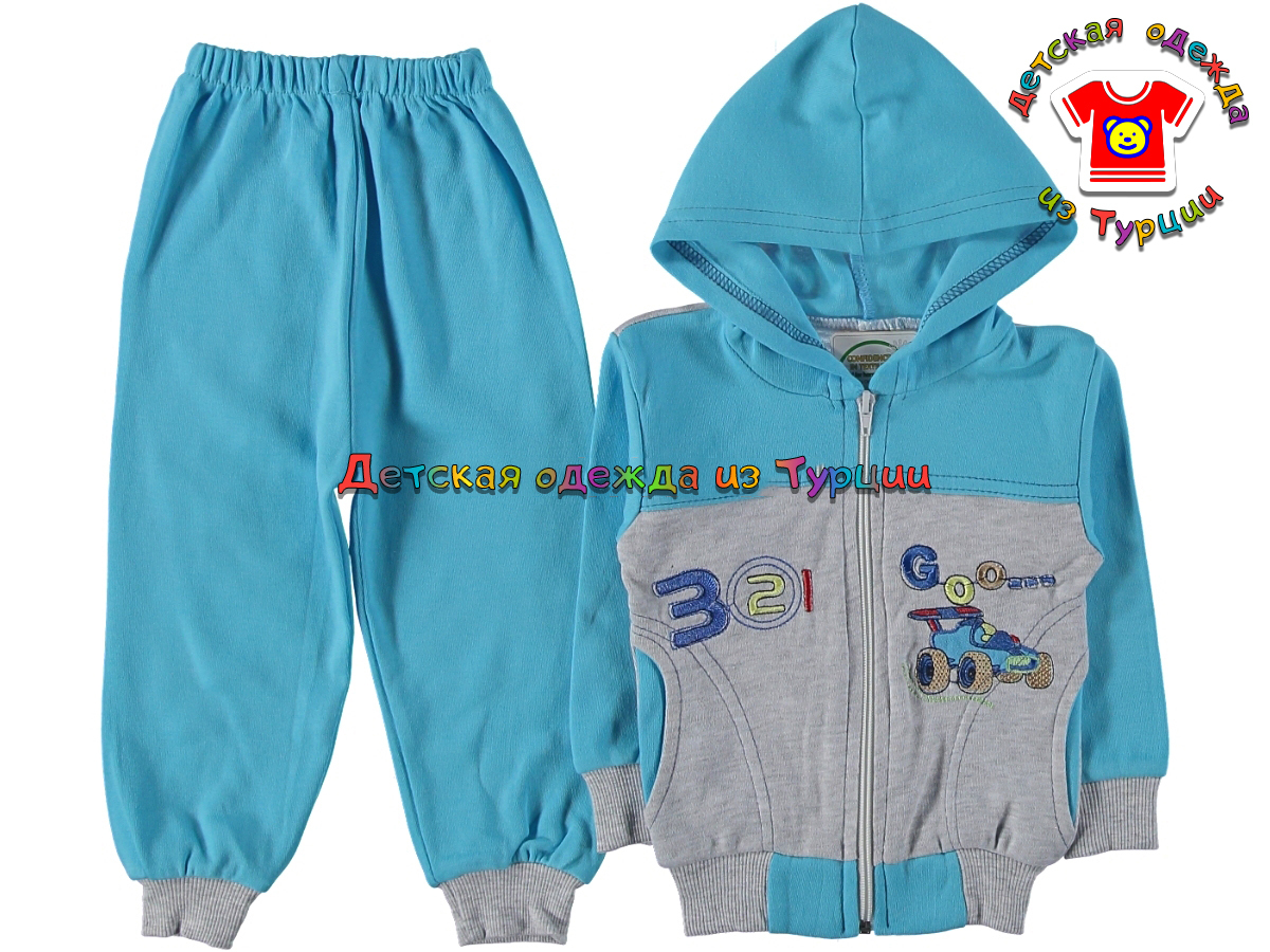 Состав: 100% хлопокСтрана производитель: ТурцияОписание: Костюм для мальчика с капюшоном, на замке. Кофточка и штанишки.