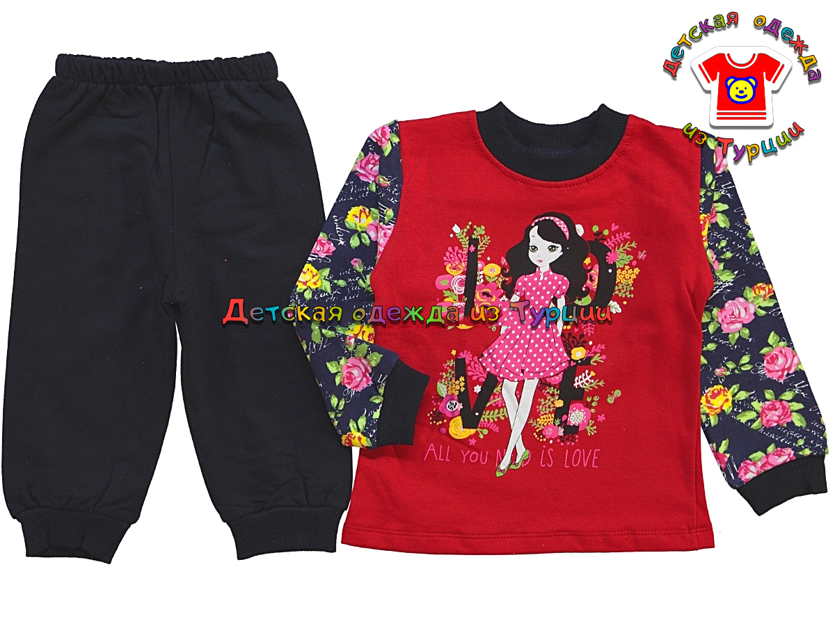 Костюм для девочки с цветочным принтом. В упаковке 3 шт.