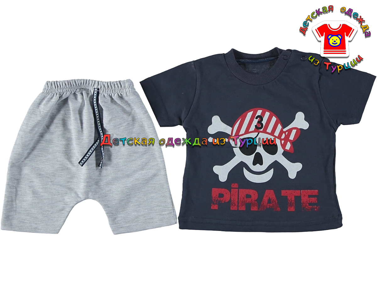 Состав: 100% хлопокСтрана производитель: ТурцияОписание: Костюм для мальчика с рисунком пирата. Шорты и футболка.