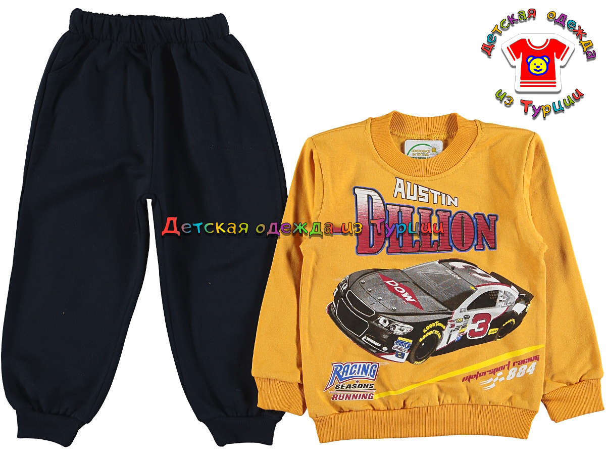 Описание: Костюм для мальчика с рисунком машины.
