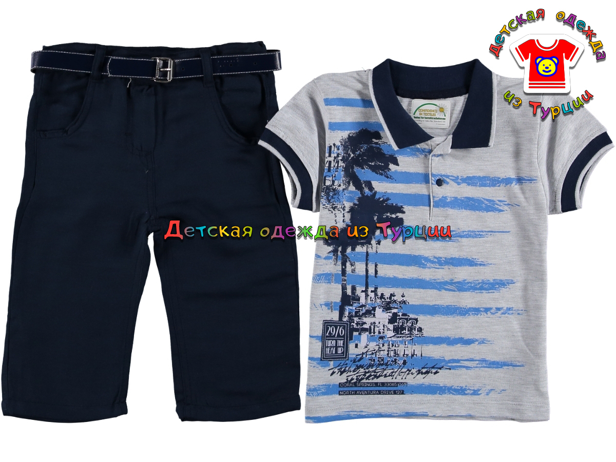 Костюм для мальчика, футболка-поло и капри. 100% хлопок.