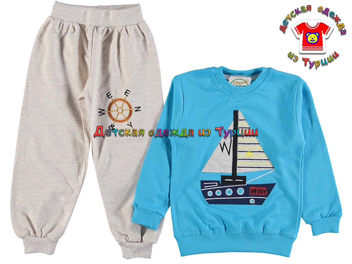 Состав: 100% хлопокСтрана производитель: ТурцияОписание: Костюм для мальчика с аппликацией корабля.