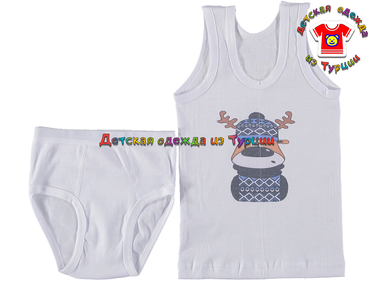 Состав: 100% хлопокСтрана производитель: ТурцияОписание: Нижнее белье для мальчика хлопковое с рисунком олененка.