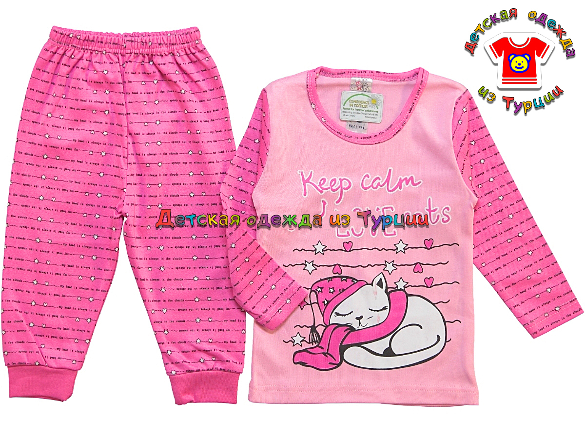 Пижама для девочки с рисунком кошечки. 100% Хлопок