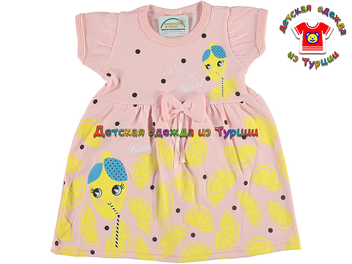 Состав: 100% хлопокСтрана производитель: ТурцияОписание: Платье с рисунком лимончика.