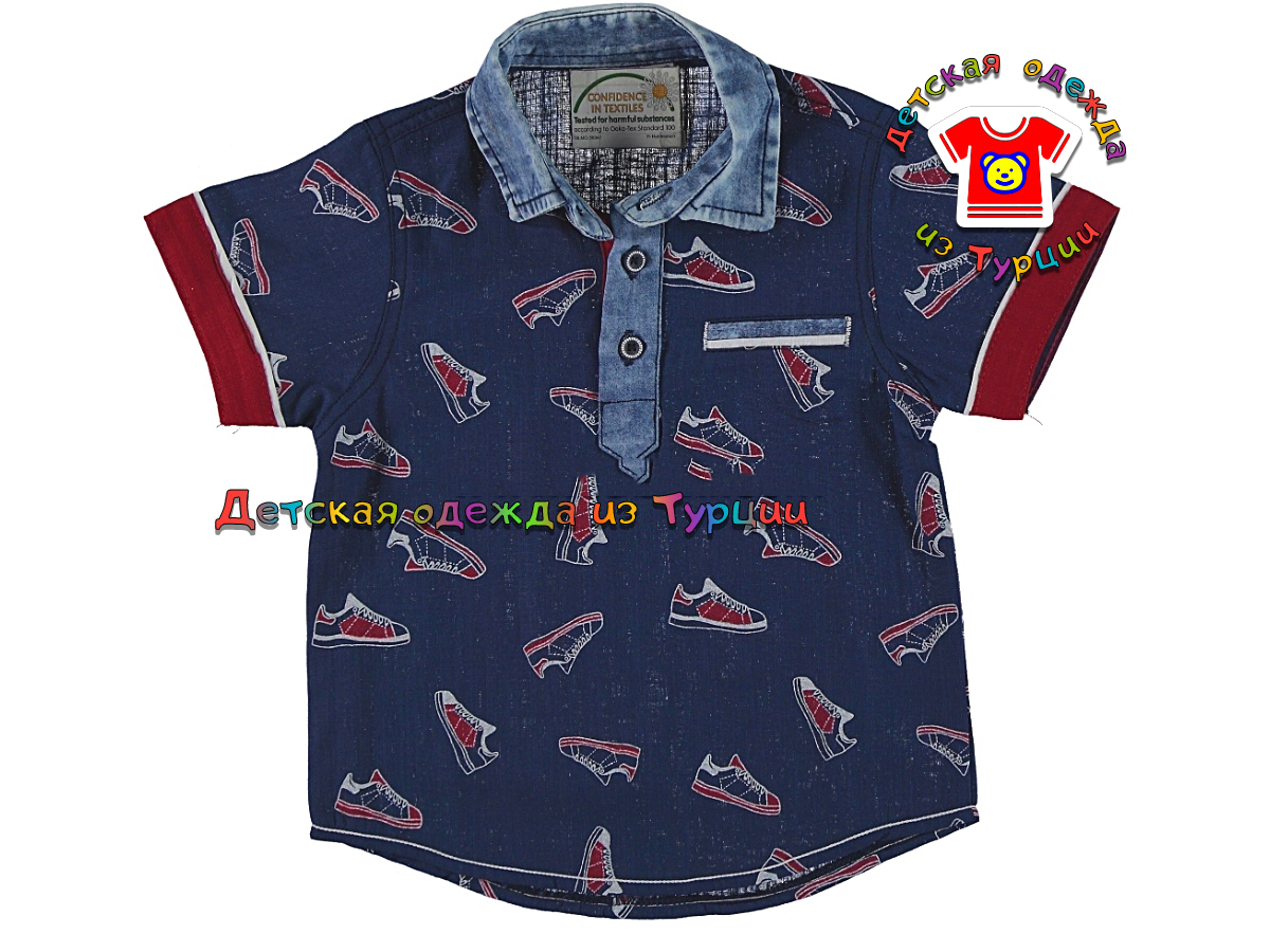 Рубашка для мальчика с рисунком кед. 100% Хлопок
