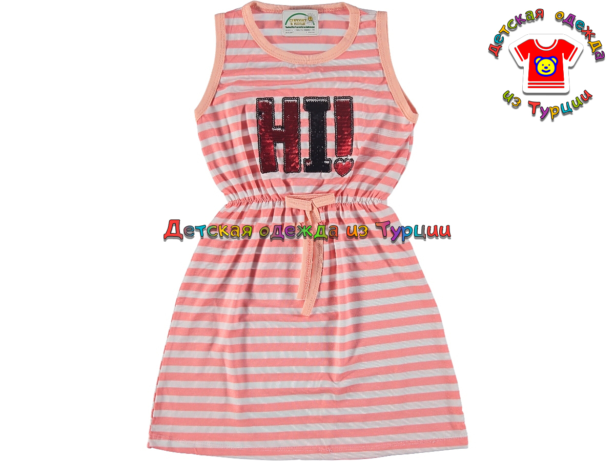 Страна производитель: ТурцияОписание: Сарафан в полоску с надписью из пайеток.