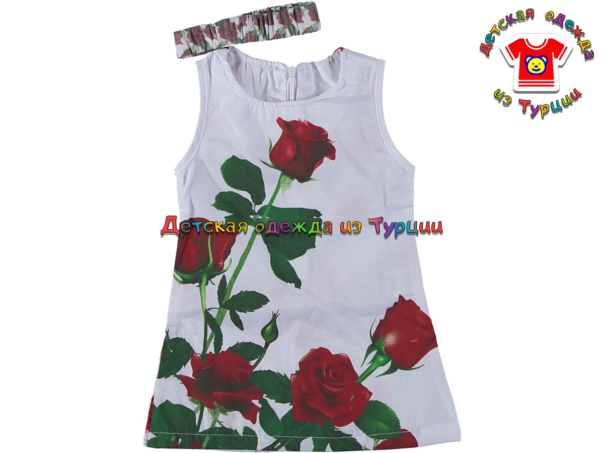 Состав: 100% хлопокСтрана производитель: ТурцияОписание: Сарафан с красочным рисунком розы, в комплекте повязка на голову.