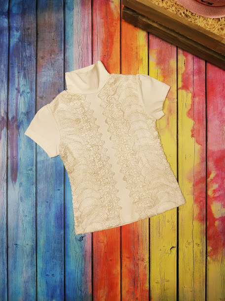 Школьная блузка с кружевами, короткий рукав. 100% хлопок.