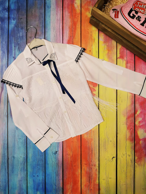 Страна производитель: ТурцияОписание: Школьная рубашка для девочки с кружевами и стразами.