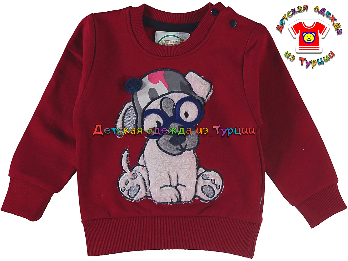 Утепленная толстовка с аппликацией собачки. 100% хлопок