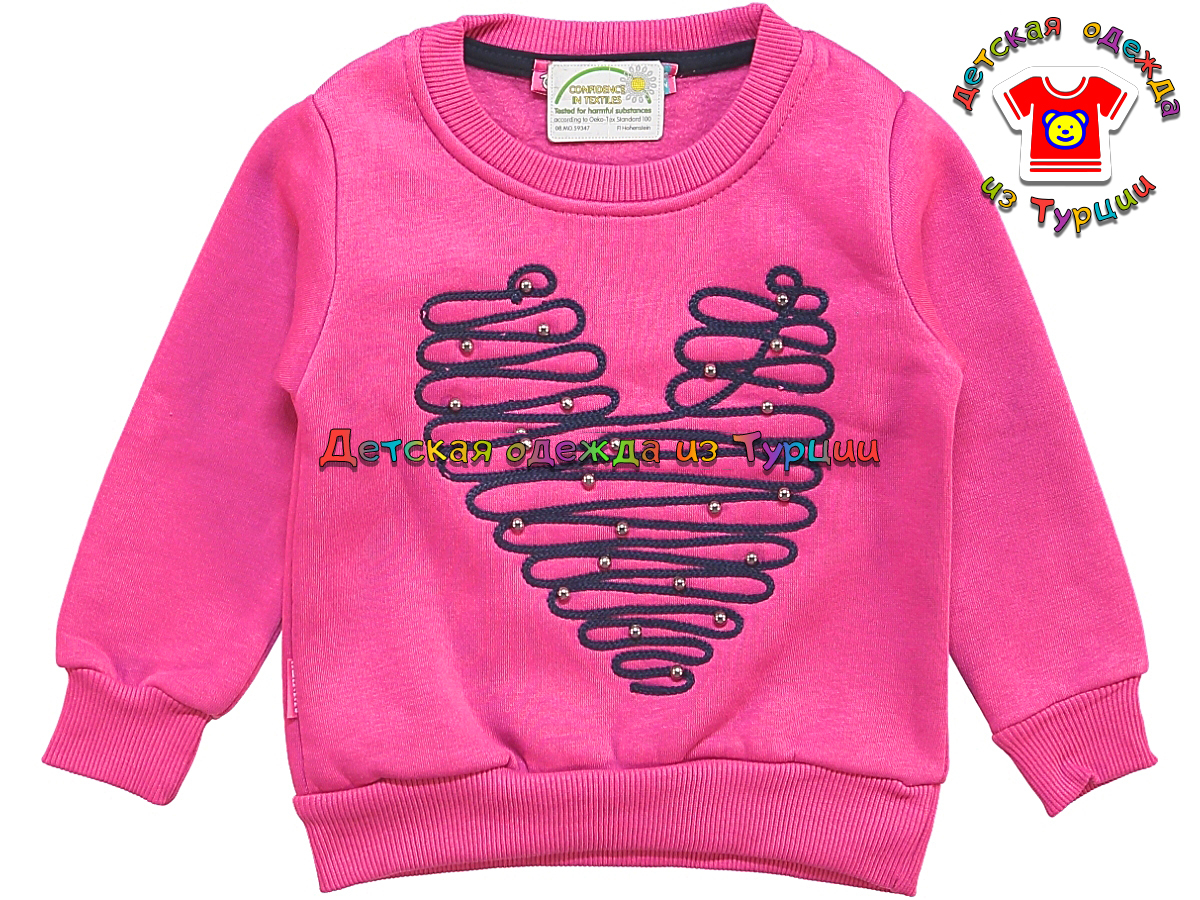 Утепленная толстовка для девочки с аппликацией в виде сердечка. 100% хлопок